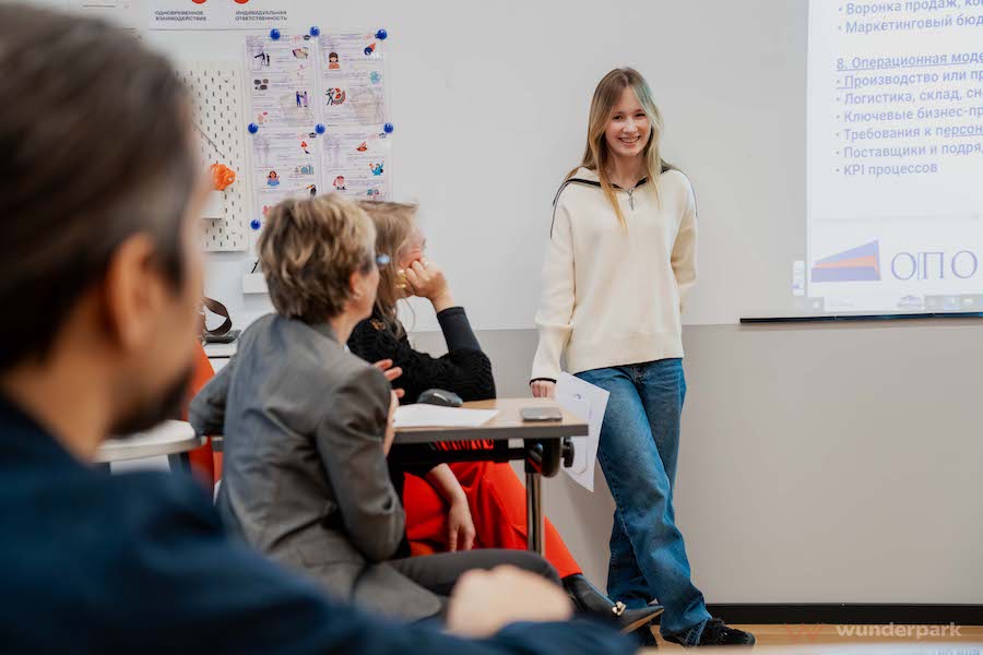 Для девятиклассников, присутствовавших на занятии в качестве вольных слушателей, это стало первым существенным погружением в предпринимательство. Однако они не растерялись: взяв за основу один из предложенных проектов (ланчи из экологически чистых продуктов), девятиклассники также приняли участие в практической части. Перед ними стояла задача продумать целевую аудиторию (ее сегменты, портрет клиентов, их ключевые потребности и поведенческие триггеры) и провести конкурентный анализ (определить, кто будет являться прямым или косвенным конкурентом, выявить SWOT и точки для собственного роста). Ребята справились на весьма достойном уровне — при поддержке Екатерины Полубояриновой, Елены Ребрик и куратора предпринимательского клуба Wunderpark International school Ярослава Михалева они четко обосновали потенциальную целевую аудиторию (студенты вузов, которые следят за своим питанием) и даже продумали наиболее эффективное размещение рекламы.